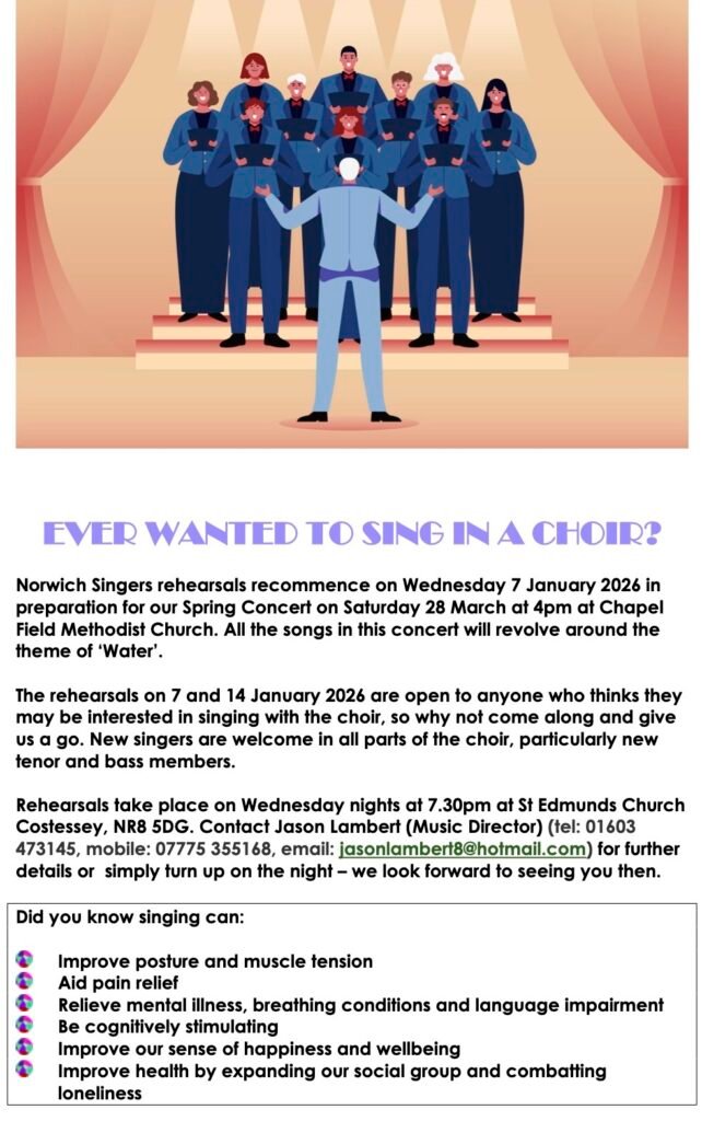 Saturday 28 March 2026 4.00pm at Chapel Field Road Methodist Church, Norwich, NR2 1SD.